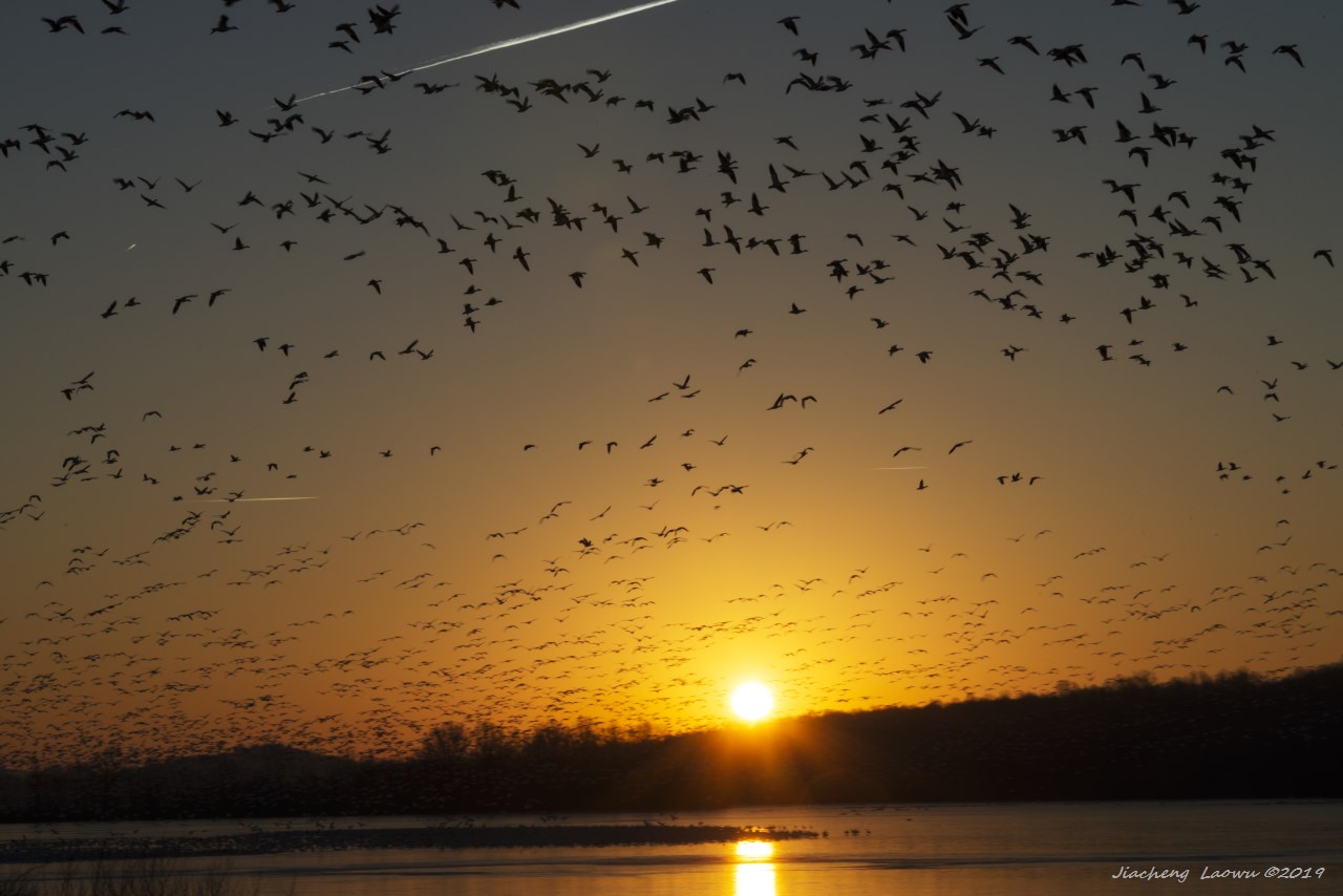 Ever since my year 2016 Middle Creek bird watching, I hardly forget the scenes of spectacular bird flocks flying over the air and feeding in the grass land. Our family revisited Middle Creek in the summer the same year. It was a disappointed trip since the whole area was quiet, and only a few birds were there in the lake. Apparently, the best time to see birds in MC is between late Febuery and early March in a year. Since the winter of 2016 was abnormally warmer, the snow geese also returned earlier than usual. Based on the report of snow geese in the MC in early Febuery, I anticipated that the President day weekend would be the peak time for returning snow geese in MC. This was a trip with whole family, with hotel reservred ahead, and a couple of days more than the mere weekend. We also planned to visit several wildlife refuges in the coastal area after the Middle creek. The majorit birds in the Middle Creek are snow geese, others are tundra swans and Canadian geese. All of them are migrators, and stop over Middle Creek for a short rest then head to the far northern for breeding.