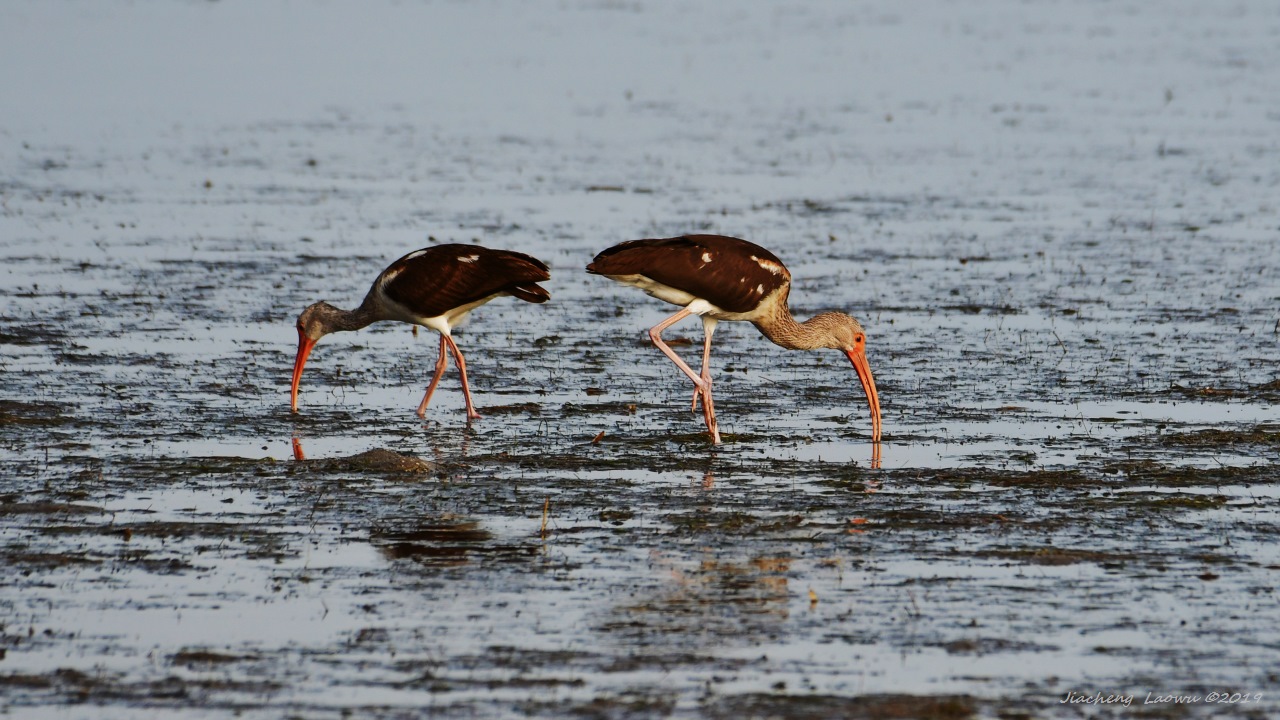 Ibis and Spoonbill are birds of Threskiornithidae Family, under the order of Pelecaniformes. Here are four specices I have photographed so far, i.e. American white ibis (Eudocimus albus), White-faced Ibis(Plegadis chihi), Glossy ibis (Plegadis falcinellus), and Roseate Spoonbill (Platalea linnaeus).